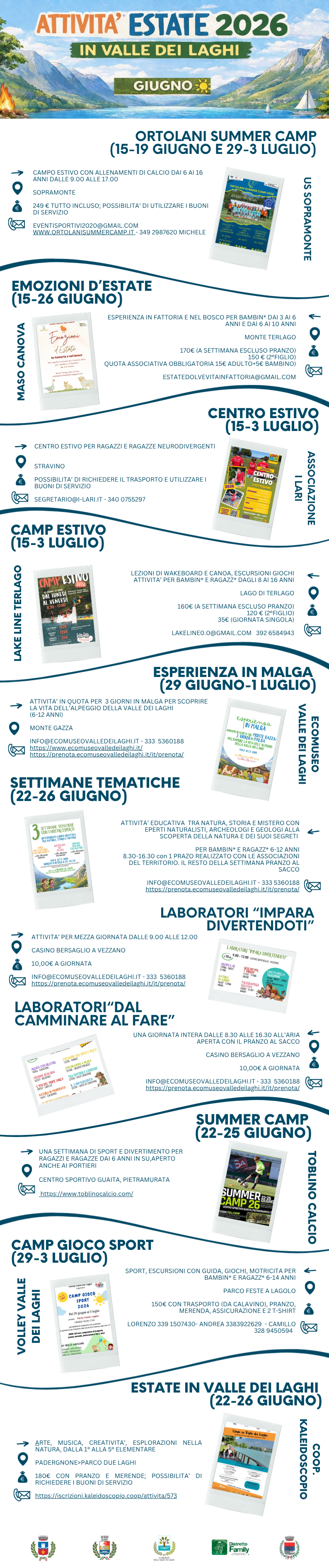 È disponibile la raccolta delle attività estive 2026 promosse da enti, associazioni e realtà private sul territorio della Valle dei Laghi.