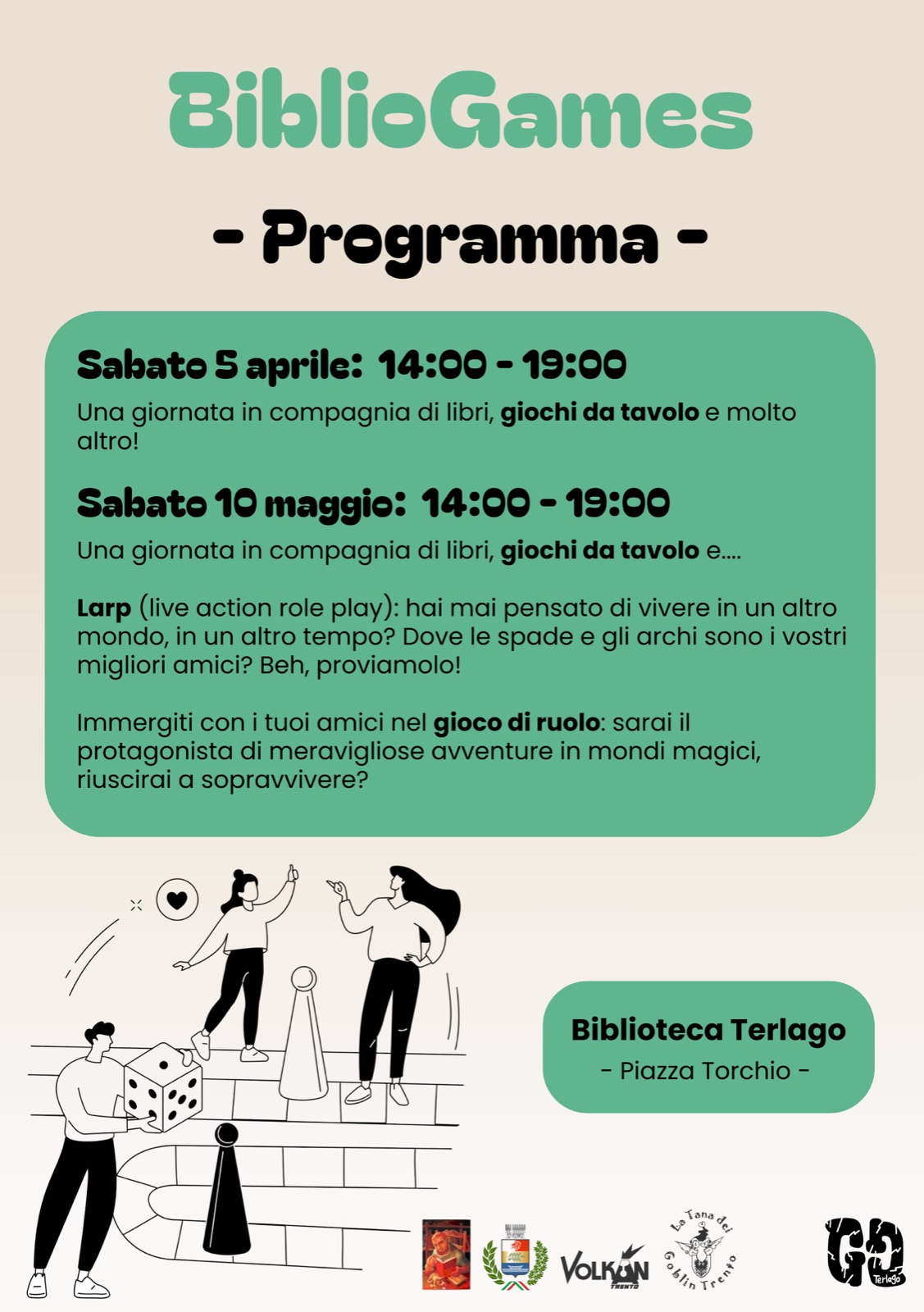 Sabato 5 aprile, dalle 14.00 alle 19.00, torna Biblio Games al Punto di Lettura di Terlago, un appuntamento in compagnia dei giochi da tavolo che ormai non può mancare!