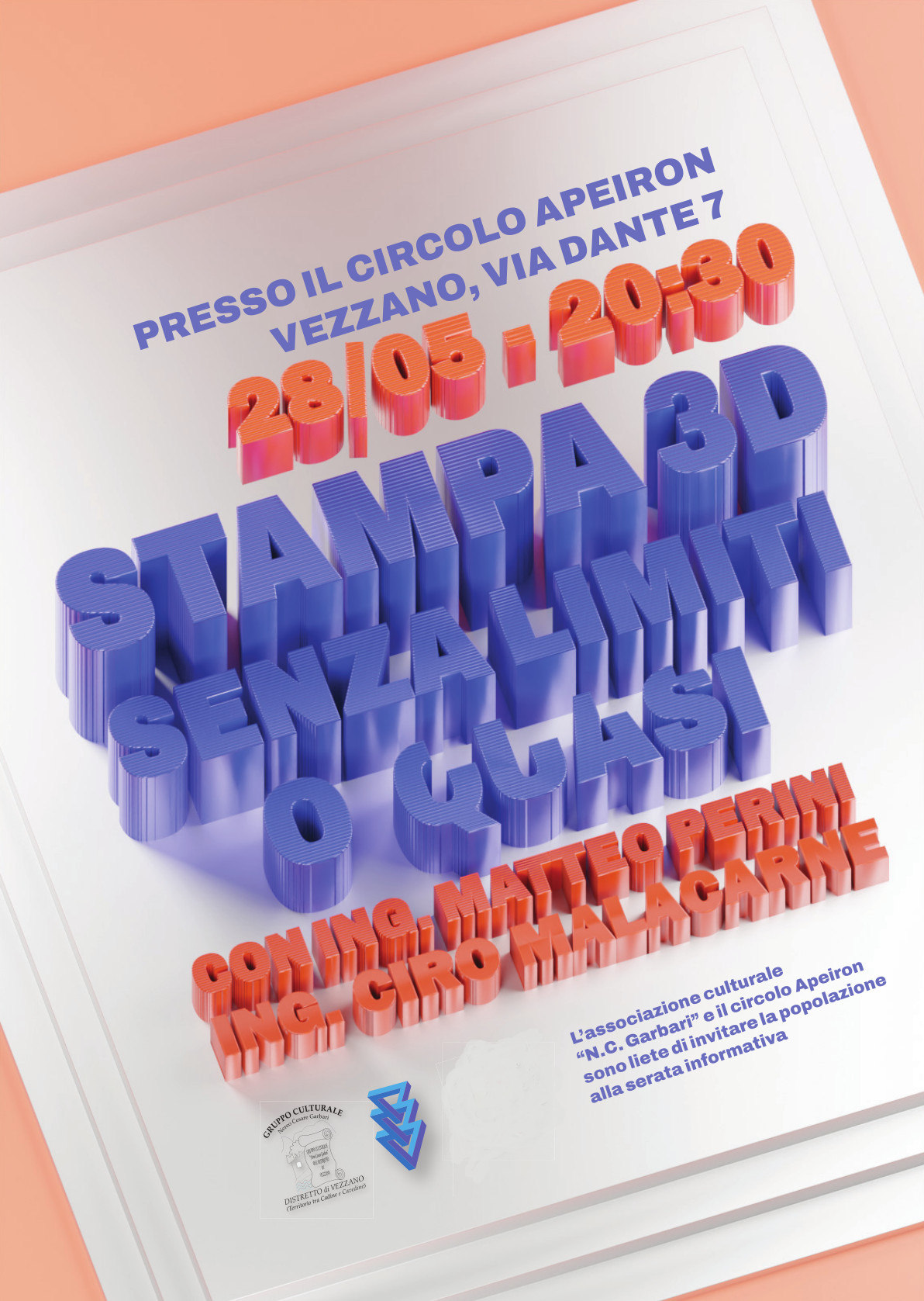 Per ulteriori informazioni: https://www.gruppoculturalegarbari.it/serate-e-corsi/stampa-3d/