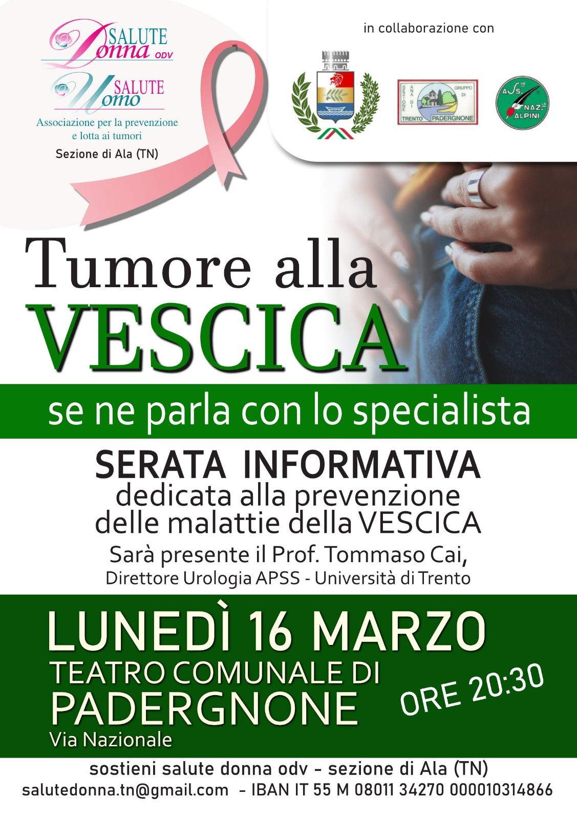 Serata informativa organizzata dagli Alpini di Padergnone con l'associazione per la prevenzione e lotta ai tumori dedicata alla prevenzione delle malattia della vescica.