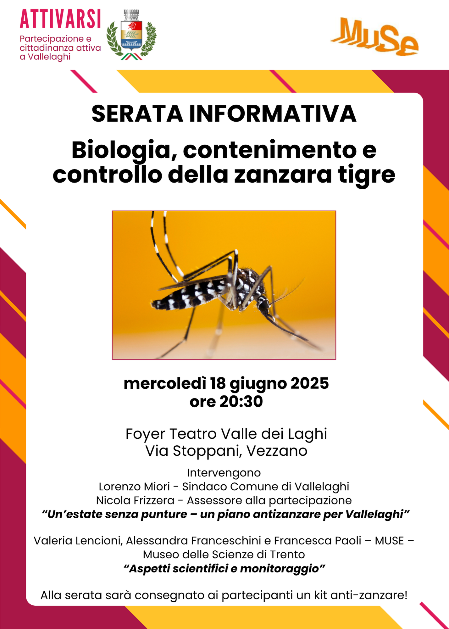 Alla serata sarà consegnato ai partecipanti un kit anti-zanzare!
